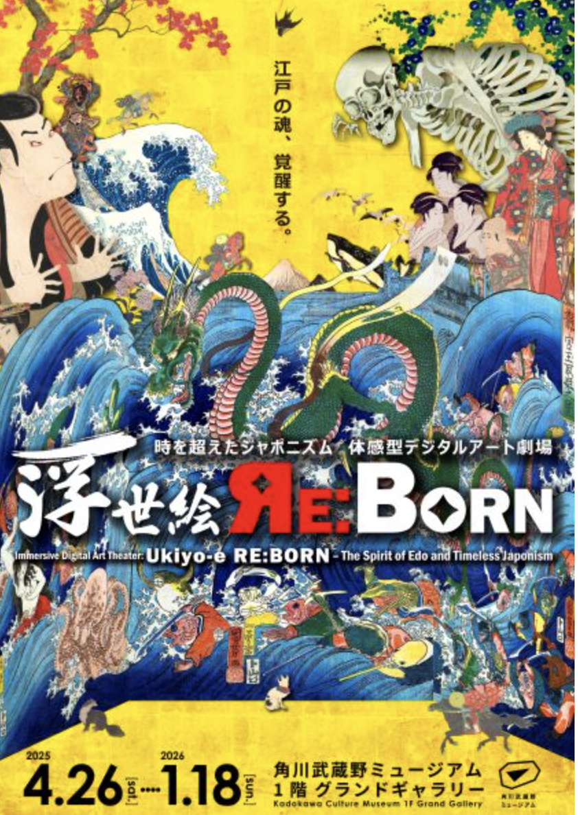 - 体感型デジタルアート劇場「浮世絵 RE:BORN」の作編曲を、当スクール講師が担当させて頂きました。角川武蔵野ミュージアムにて約1年間の開催となります。