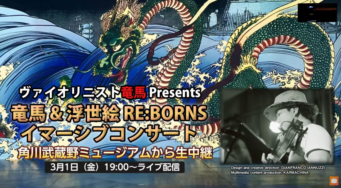 - 3月1日、角川武蔵野ミュージアムにて開催された、「ヴァイオリニスト竜馬Presents 竜馬 & 浮世絵RE:BORNS イマーシブコンサート」編曲全編と、一部作曲を、当スクール講師2名が担当し、本コンサートにおいて、指揮者としても参加しております。下記動画より、よろしければご覧ください。